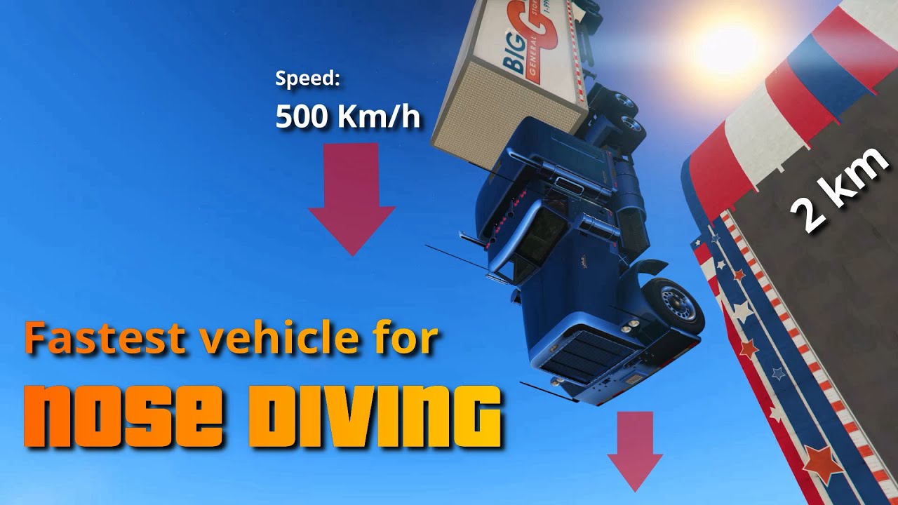 GTA V Fastest vehicle for free fall | Nose Dive Test In this video we'll find out which vehicle fastest for nose diving in GTA V. we've made a special track to carry out this Nose Dive Test. we have 15 contenders for this test covering various almost all classes of vehicles available in GTA V. This Test will also tell you what's the higest speed vehicle can obtain in GTA V.